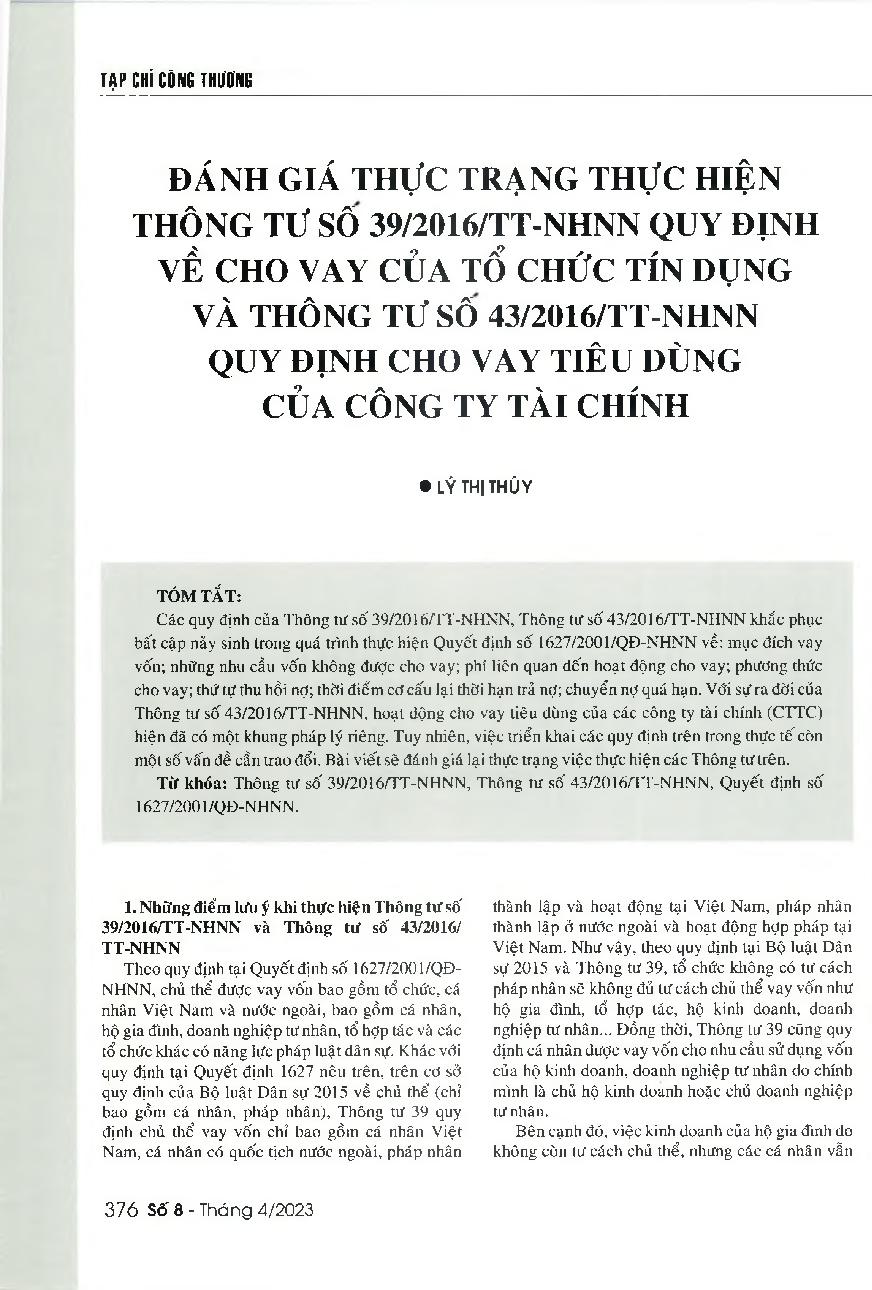 Đánh giá thực trạng thực hiện Thông tư số 39/2016/TT-NHNN quy định về cho vay của tố chức tín dụng và Thông tư số 43/2016/TT-NHNN quy định cho vay tiêu dùng của công ty tài chính