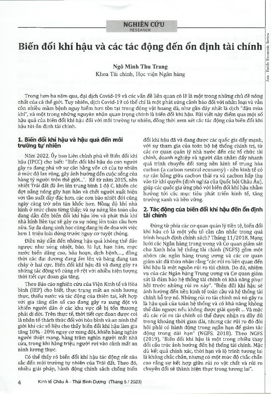 Biến đổi khí hậu và các tác động đến ổn định tài chính