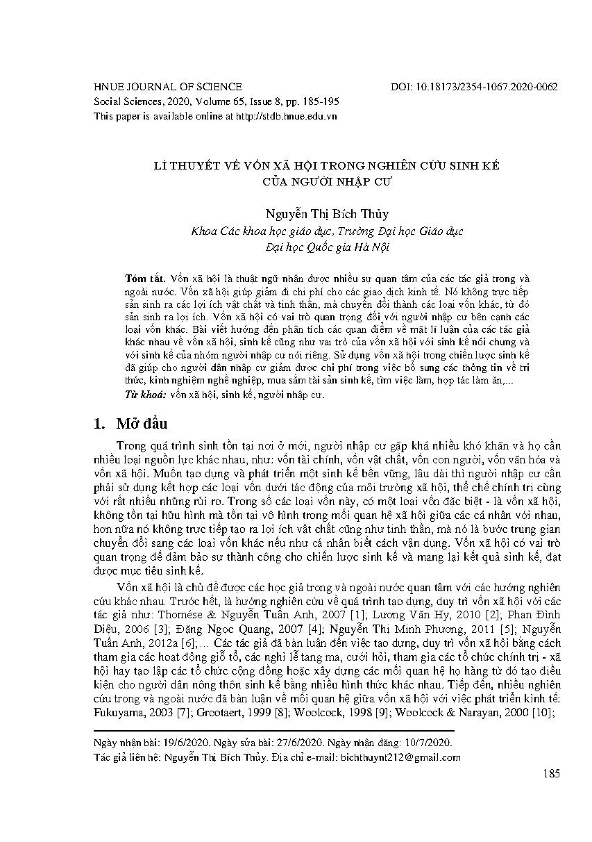 Lý thuyết về vốn xã hội trong nghiên cứu sinh kế của người nhập cư = The theory of social capital in studying immigrant livelihoods