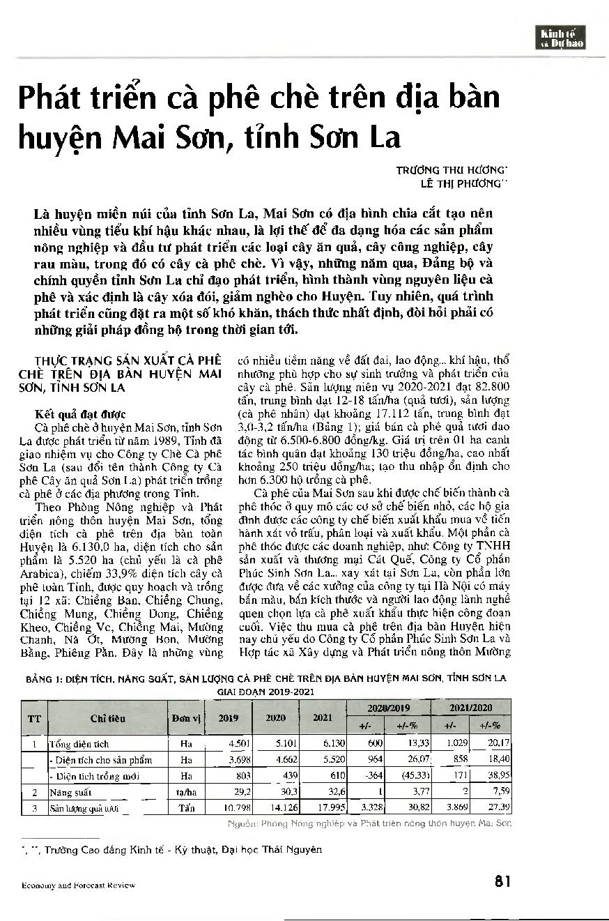 Phát triển cà phê chè trên địa bàn huyện Mai Sơn, tỉnh Sơn La