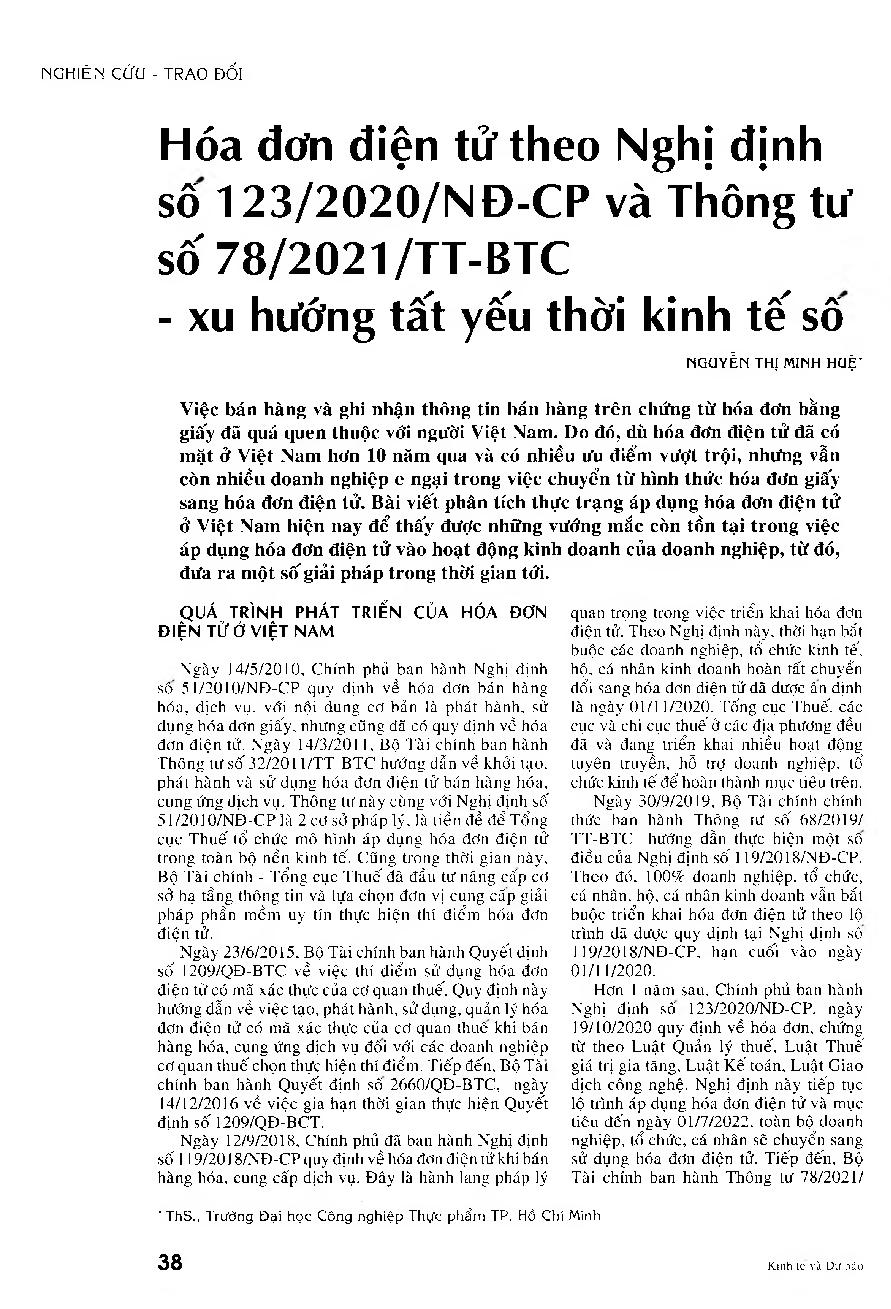 Hóa đơn điện tử theo Nghị định số 123/2020/NĐ-CP và Thông tư số 78/2021/TT-BTC - xu hướng tất yếu thời kinh tế số