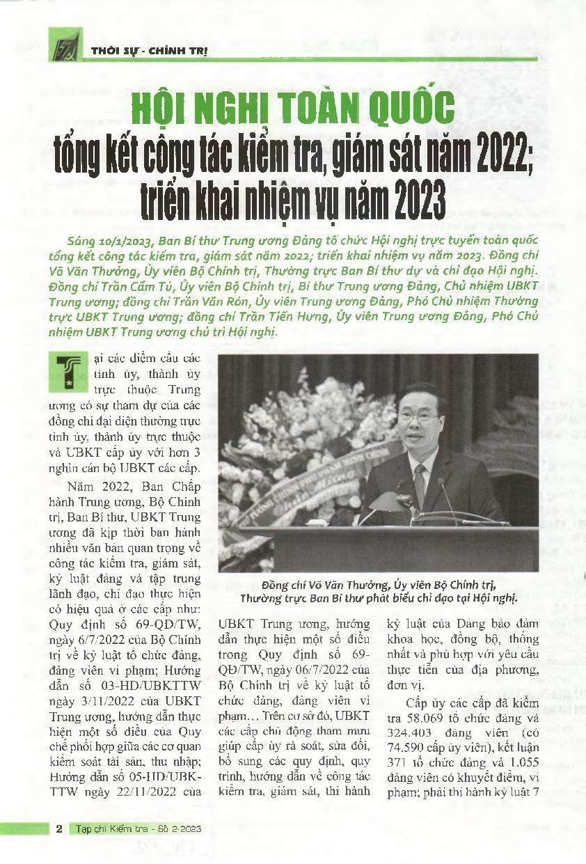 Hội nghị toàn quốc tổng kết công tác kiểm tra, giám sát năm 2022; triển khai nhiệm vụ năm 2023