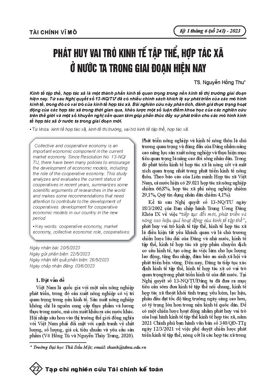 Phát huy vai trò kinh tế tập thể, hợp tác xã ở nước ta trong giai đoạn hiện nay = Exploiting the Role of collective economy and cooperative in Vietnam at present