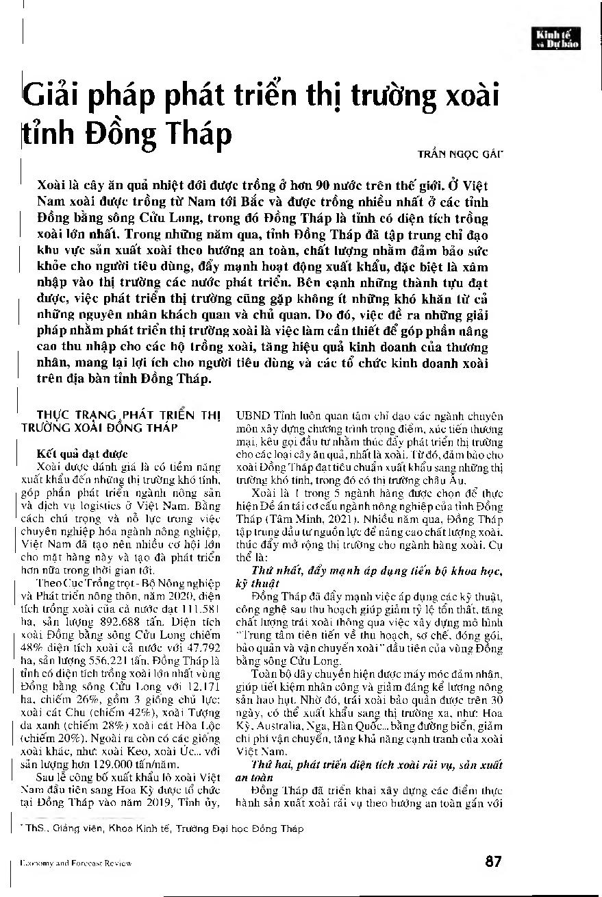 Giải pháp phát triển thị trường xoài tỉnh Đồng Tháp