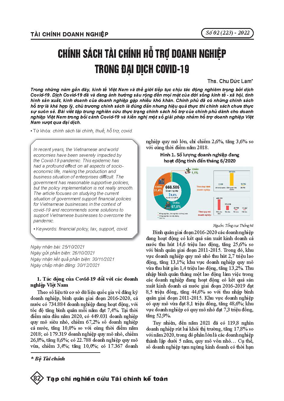 Chính sách tài chính hỗ trợ doanh nghiệp trong đại dịch Covid-19 = The financial policy for supporting businesses in the Covid-19 pandemic