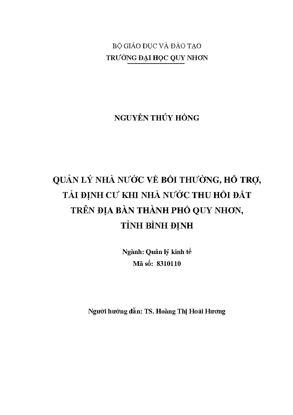 Quản lý nhà nước về bồi thường, hỗ trợ, tái định cư khi nhà nước thu hồi đất trên địa bàn thành phố Quy Nhơn, tỉnh Bình Định