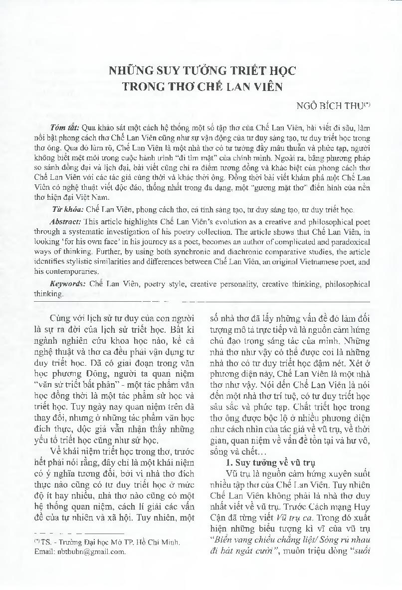 Những suy tưởng triết học trong thơ Chế Lan Viên = Philosophical thoughts in Chế Lan Viên’s poetry