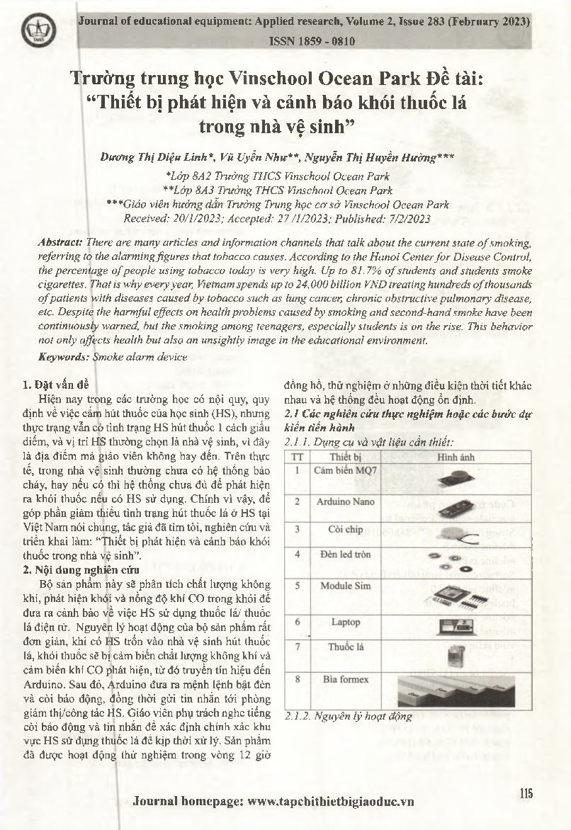 Tác giả: Đặng Duy Quang; Phan Cảnh Chương; Lê Thị Hằng; Trần Thị Yến Linh; Dương Thị Huỳnh Mai;