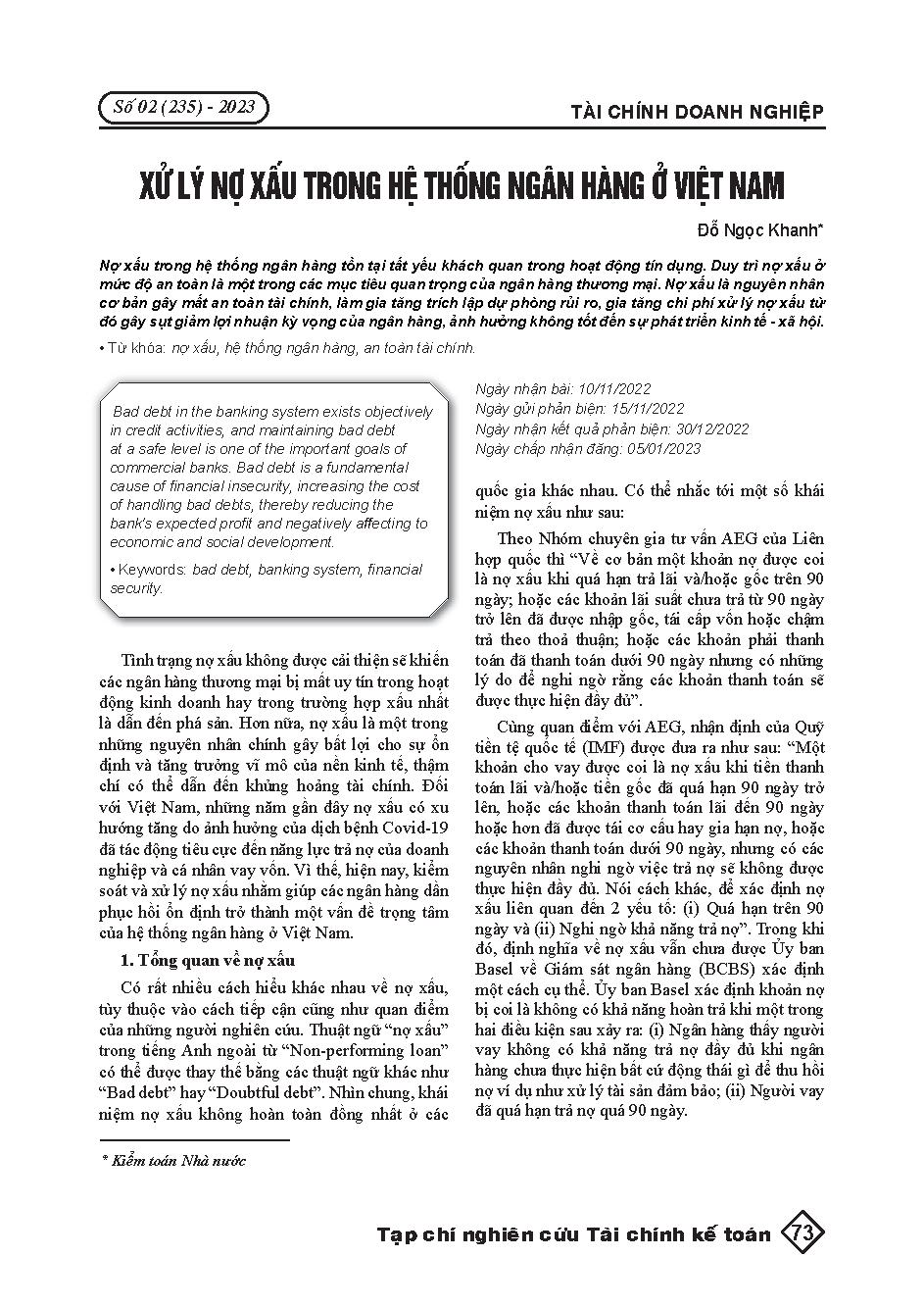Xử lý nợ xấu trong hệ thống ngân hàng ở Việt Nam = Handling the current bad debt in Vietnam's banking system