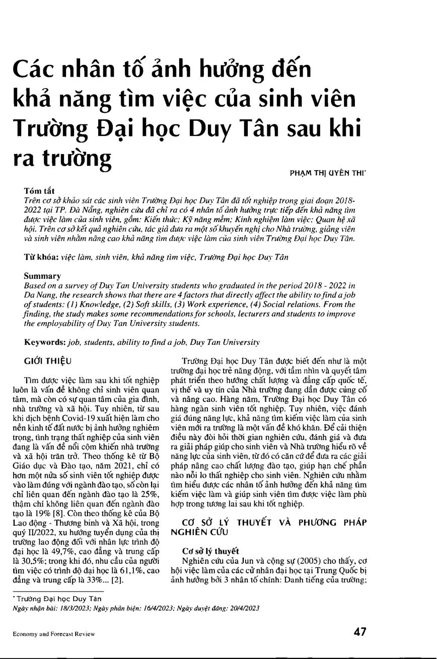 Các nhân tố ảnh hưởng đến khả năng tìm việc của sinh viên Trường Đại học Duy Tân sau khi ra trường