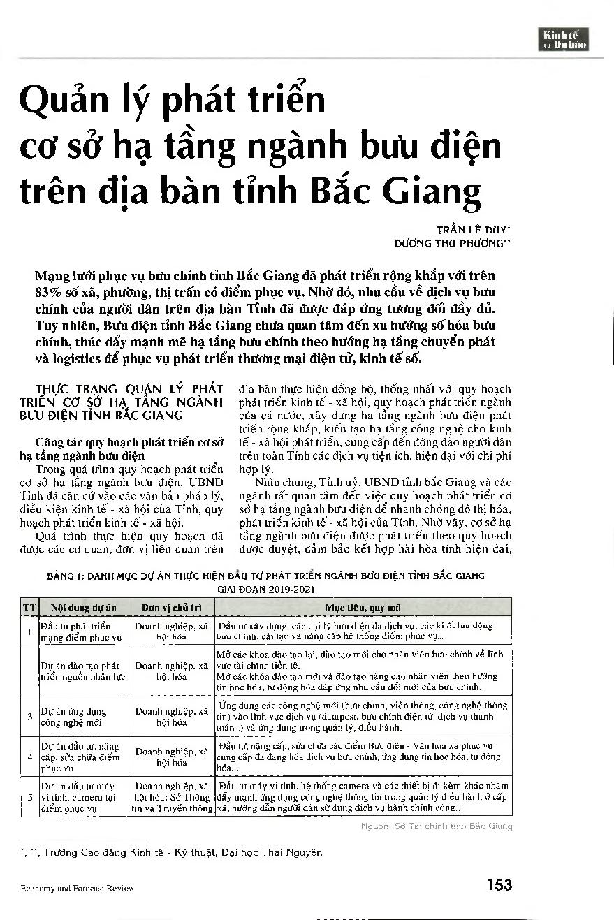 Quản lý phát triển cơ sở hạ tầng ngành bưu điện trên địa bàn tỉnh Bắc Giang