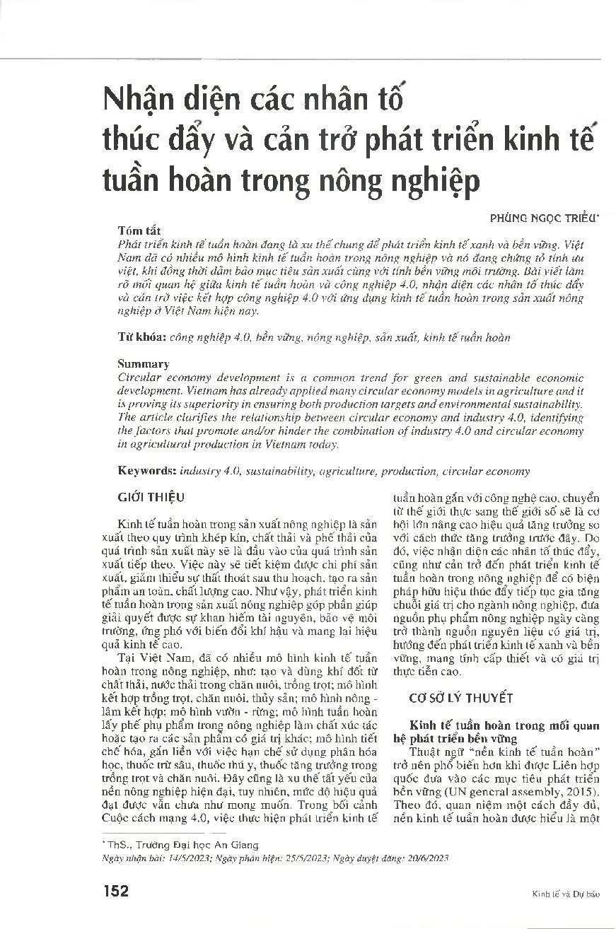 Nhận diện các nhân tố thúc đẩy và cản trở phát triển kinh tế tuần hoàn trong nông nghiệp