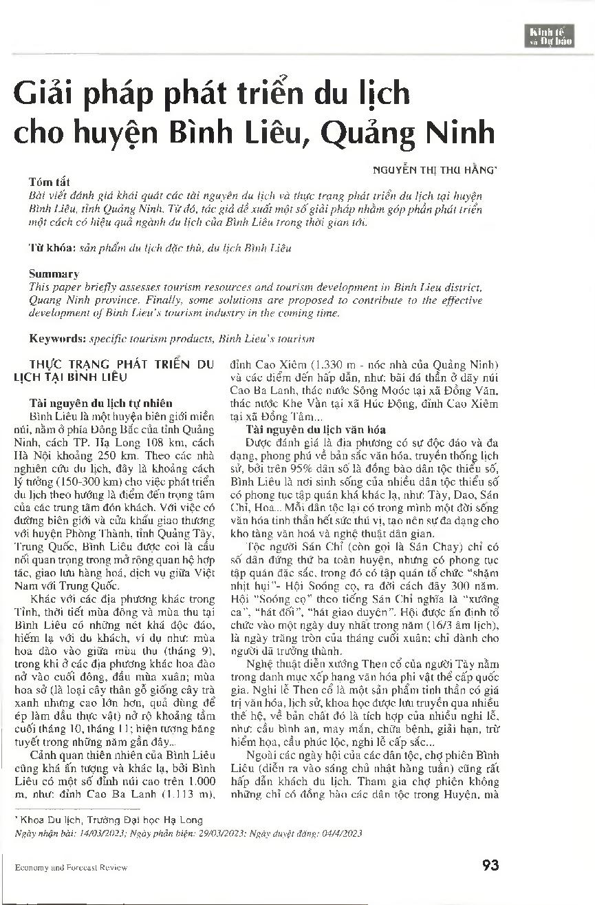 Giải pháp phát triển du lịch cho huyện Bình Liêu, Quảng Ninh