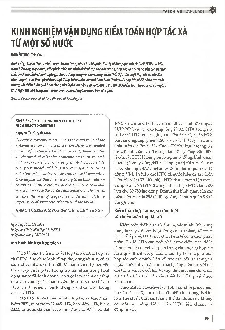 Kinh nghiệm vận dụng kiểm toán hợp tác xã từ một số nước = Experience in applying cooperative audit from selected countries