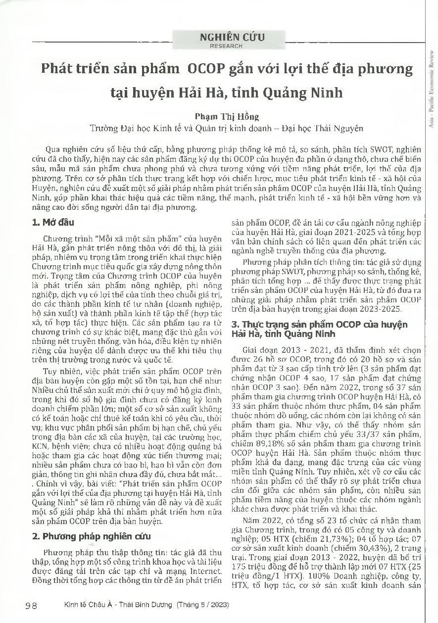 Phát triển sản phẩm OCOP gắn với lợi thế địa phương tại huyện Hải Hà, tỉnh Quảng Ninh