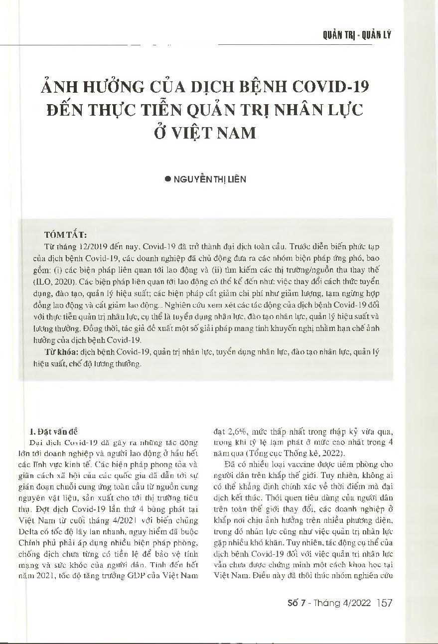 Ảnh hưởng của dịch bệnh Covid-19 đến thực tiễn quản trị nhân lực ở Việt Nam = Impacts of the COVID-19 pandemic on the human resource management practices in Vietnam