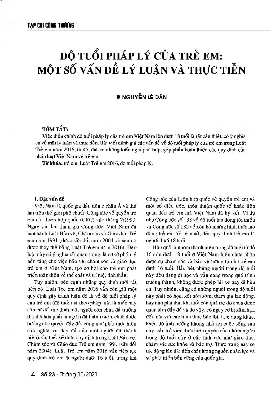 Độ tuổi pháp lý của trẻ em: Một số vấn đề lý luận và thực tiễn = The legal age of children: Some theoretical and practical issues
