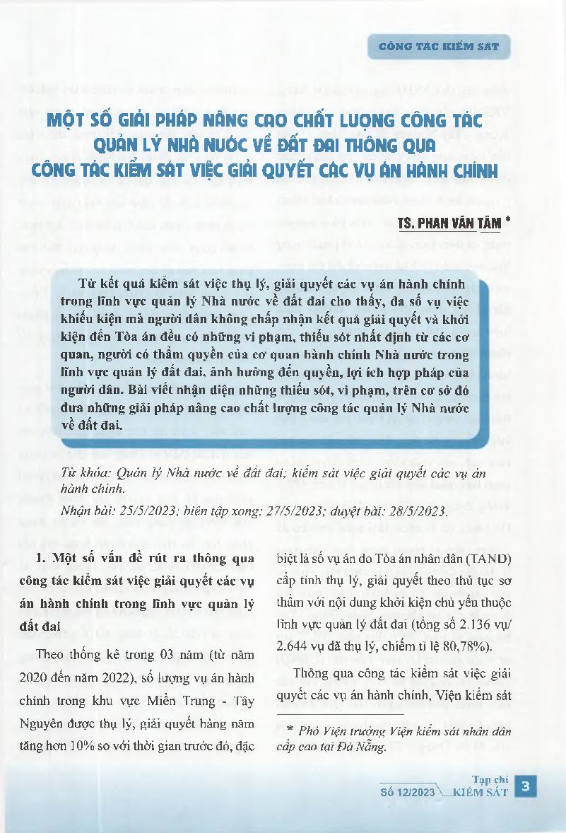 Một số giải pháp nâng cao chất lượng công tác quản lý Nhà nước về đất đai thông qua công tác kiểm sát việc giải quyết các vụ án hành chính