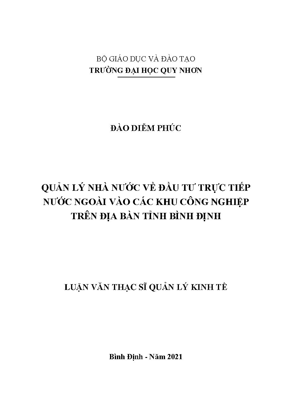 Quản lý nhà nước về vốn đầu tư trực tiếp nước ngoài vào các khu công nghiệp trên địa bàn tỉnh Bình Định