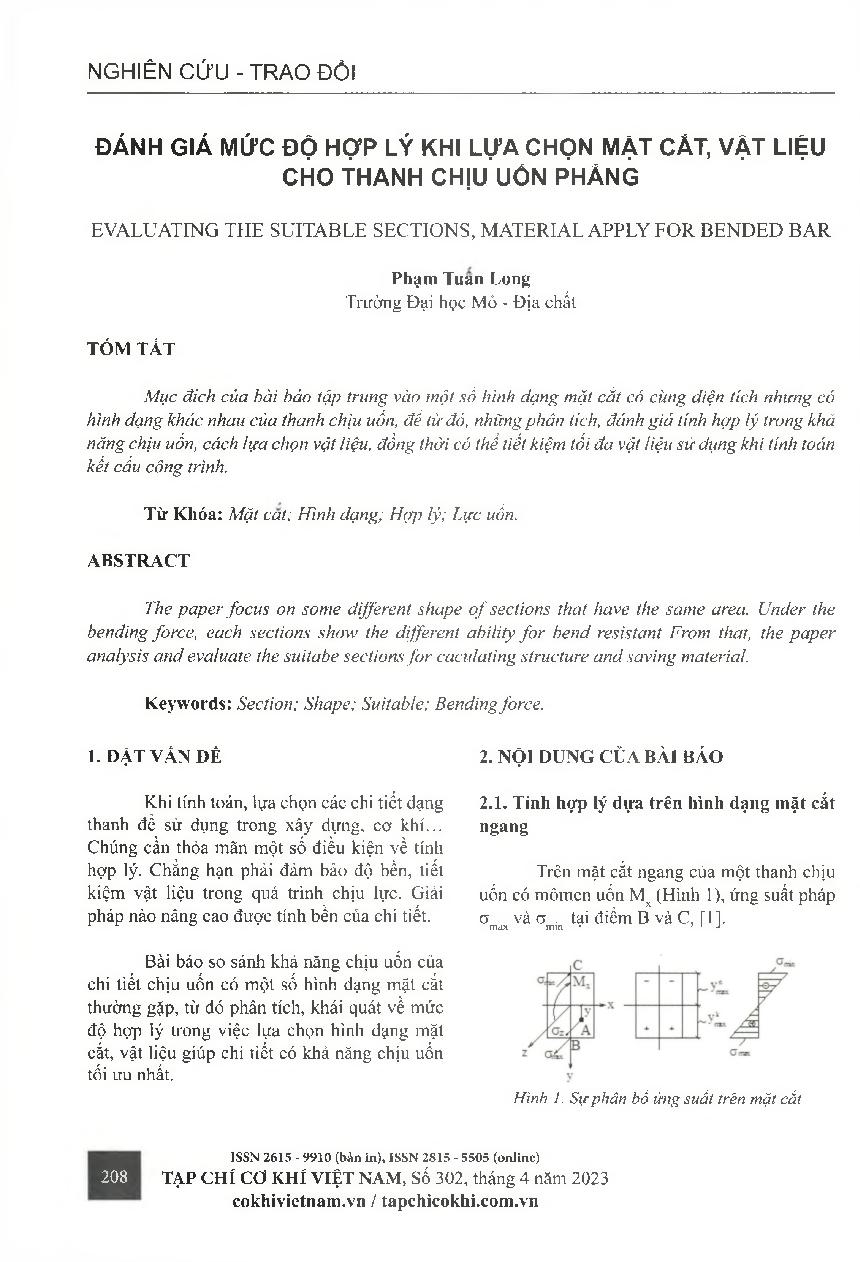 Đánh giá mức độ họp lý khi lựa chọn mặt cắt, vật liệu cho thanh chịu uốn phẳng = Evaluating the suitable sections, material apply for bended bar