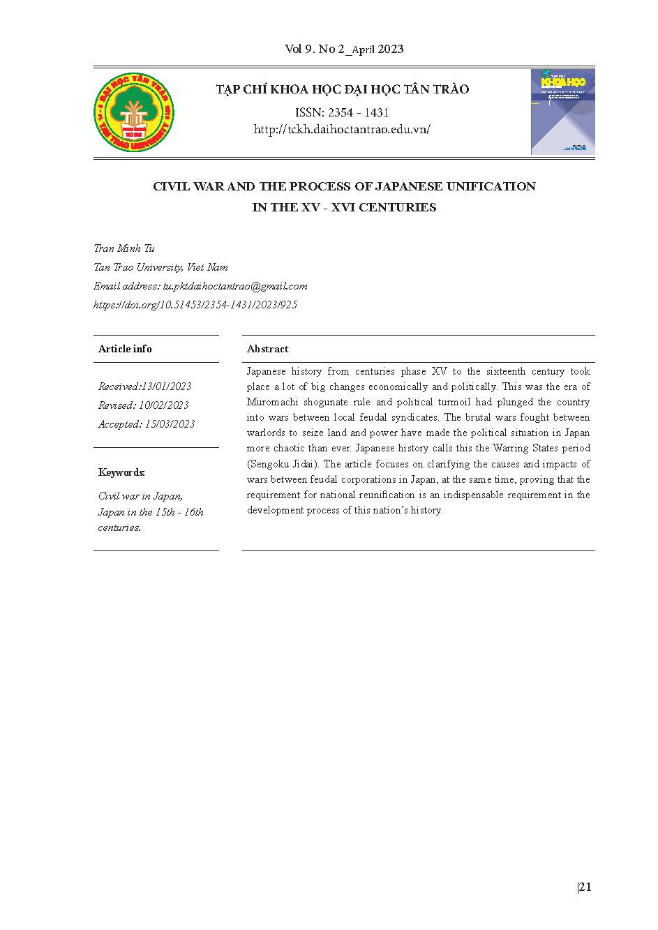 Nội chiến và quá trình thống nhất Nhật Bản trong các thế kỉ XV - XVI = Civil war and the process of Japanese unification in the XV - XVI centuries