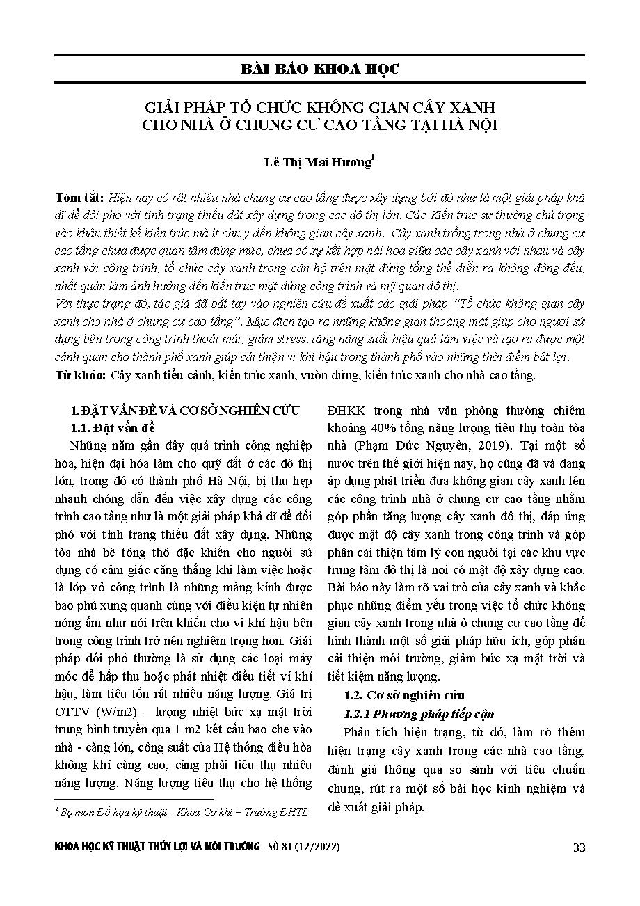 Giải pháp tổ chức không gian cây xanh cho nhà ở chung cư cao tầng tại Hà Nội = Solutions to organizing the green space for high-rise Building in Hanoi