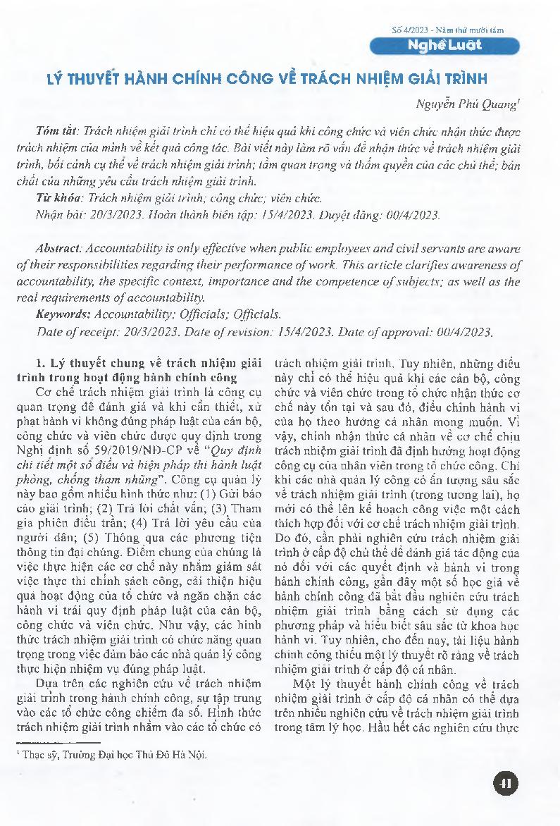 Lý thuyết hành chính công về trách nhiệm giải trình = Theory on public administration on accountability