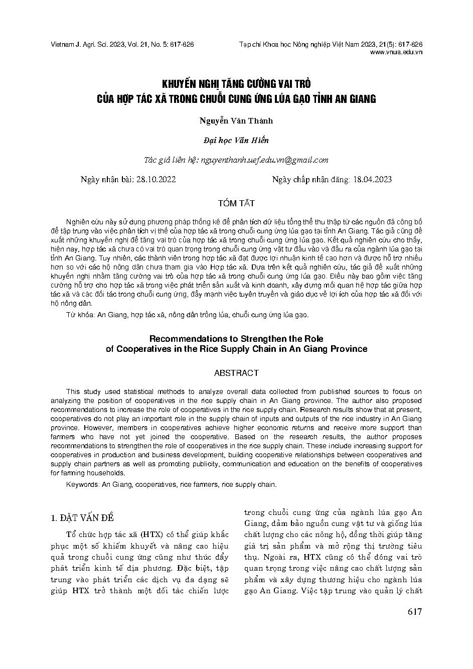 Khuyến nghị tăng cường vai trò của hợp tác xã trong chuỗi cung ứng lúa gạo tỉnh An Giang