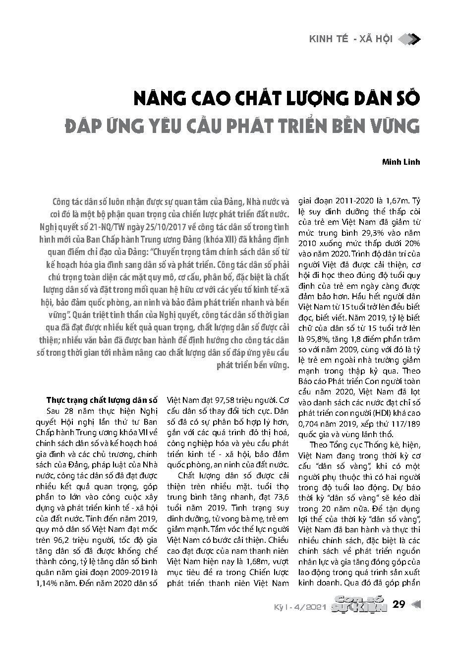 Nâng cao chất lượng dân số đáp ứng yêu cầu phát triển bền vững
