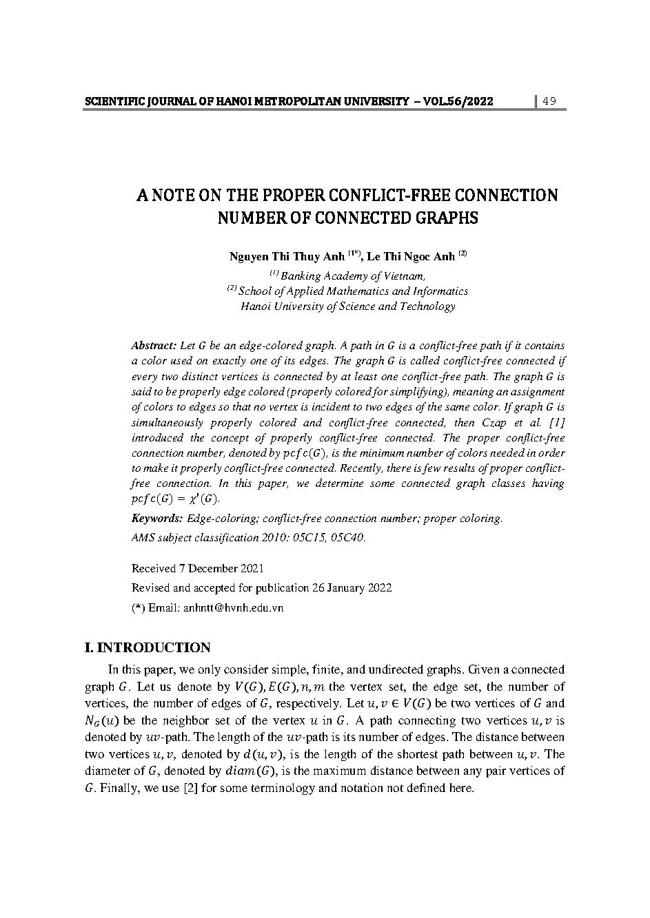 Một lưu ý về số kết nối không xung đột thích hợp của các đồ thị liên thông = A note on the proper conflict-free connection number of connected graphs