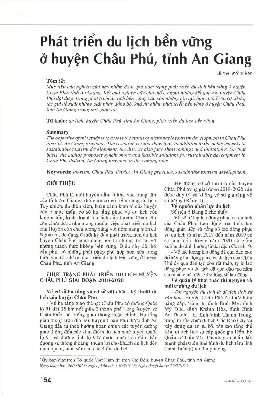 Phát triển du lịch bền vững ở huyện Châu Phú, tỉnh An Giang