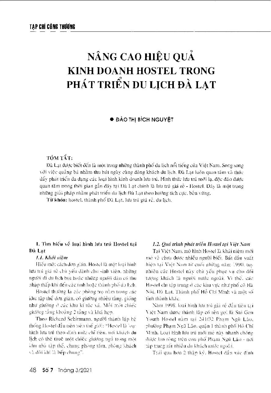 Nâng cao hiệu quả kinh doanh hostel trong phát triển du lịch Đà Lạt