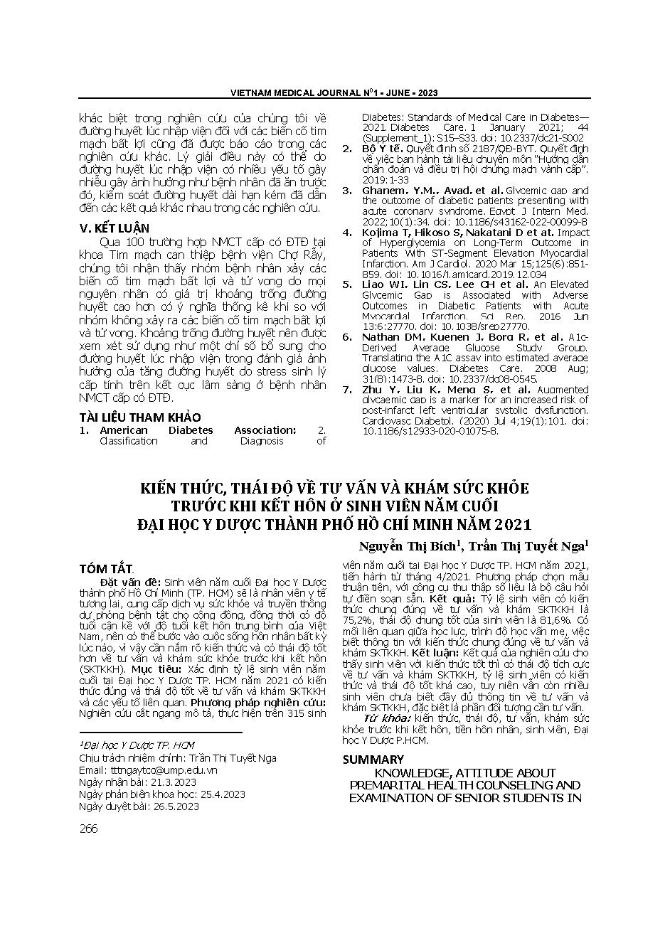 Kiến thức, thái độ về tư vấn và khám sức khỏe trước khi kết hôn ở sinh viên năm cuối Đại học Y dược thành phố Hồ Chí Minh năm 2021 = Knowledge, attitude about premarital health counseling and examination of senior students in the university of medicine an