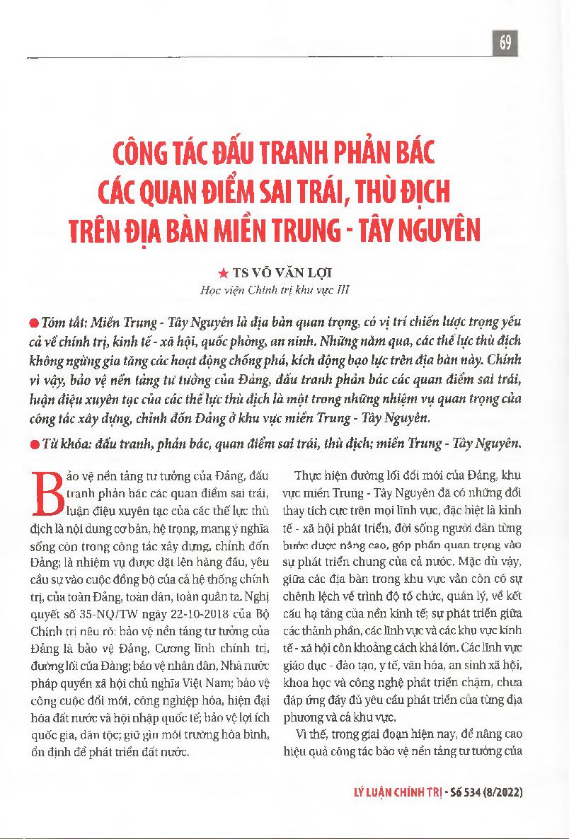 Công tác đấu tranh phản bác các quan điểm sai trái, thù địch trên địa bàn miền Trung - Tây Nguyên