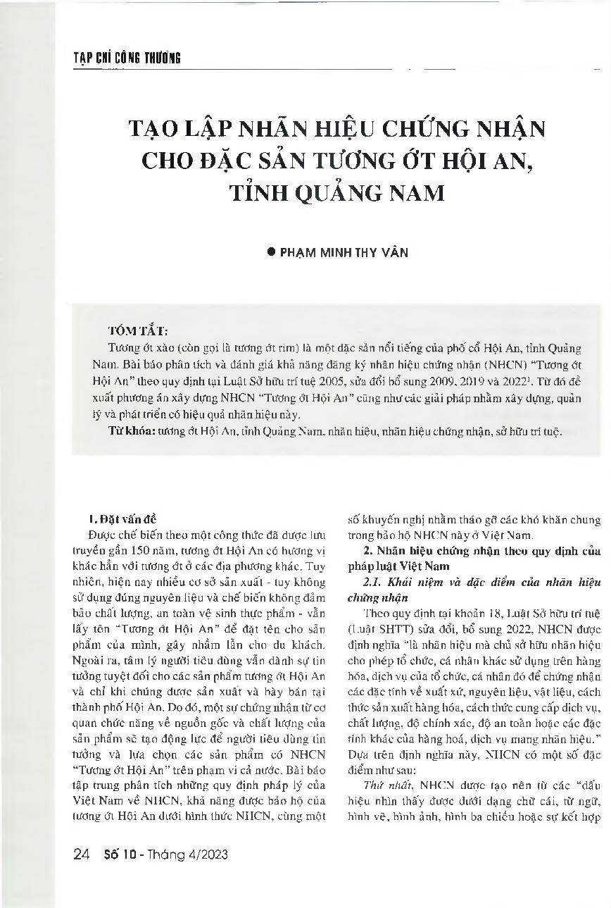 Tạo lập nhãn hiệu chứng nhận cho đặc sản tương ớt Hội An, tỉnh Quảng Nam
