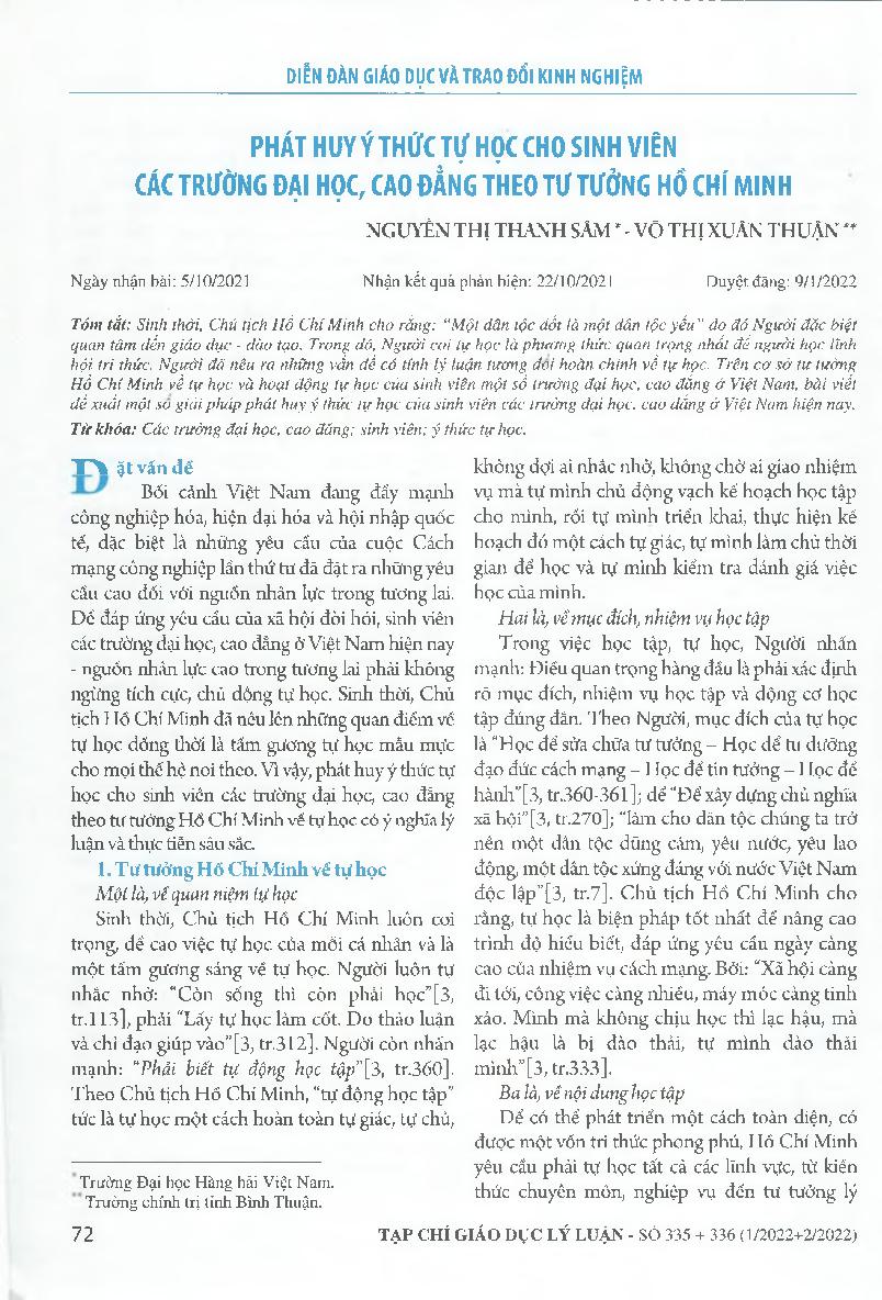 Phát huy ý thức tự học cho sinh viên các trường đại học, cao đẳng theo tư tưởng Hồ Chí Minh