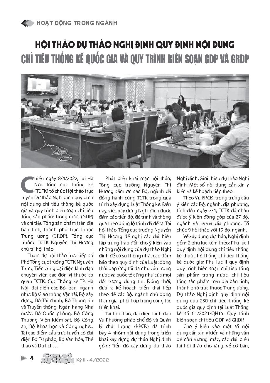 Hội thảo Dự thảo Nghị định quy định nội dung chỉ tiêu thống kê quốc gia và quy trình biên soạn GDP và GRDP
