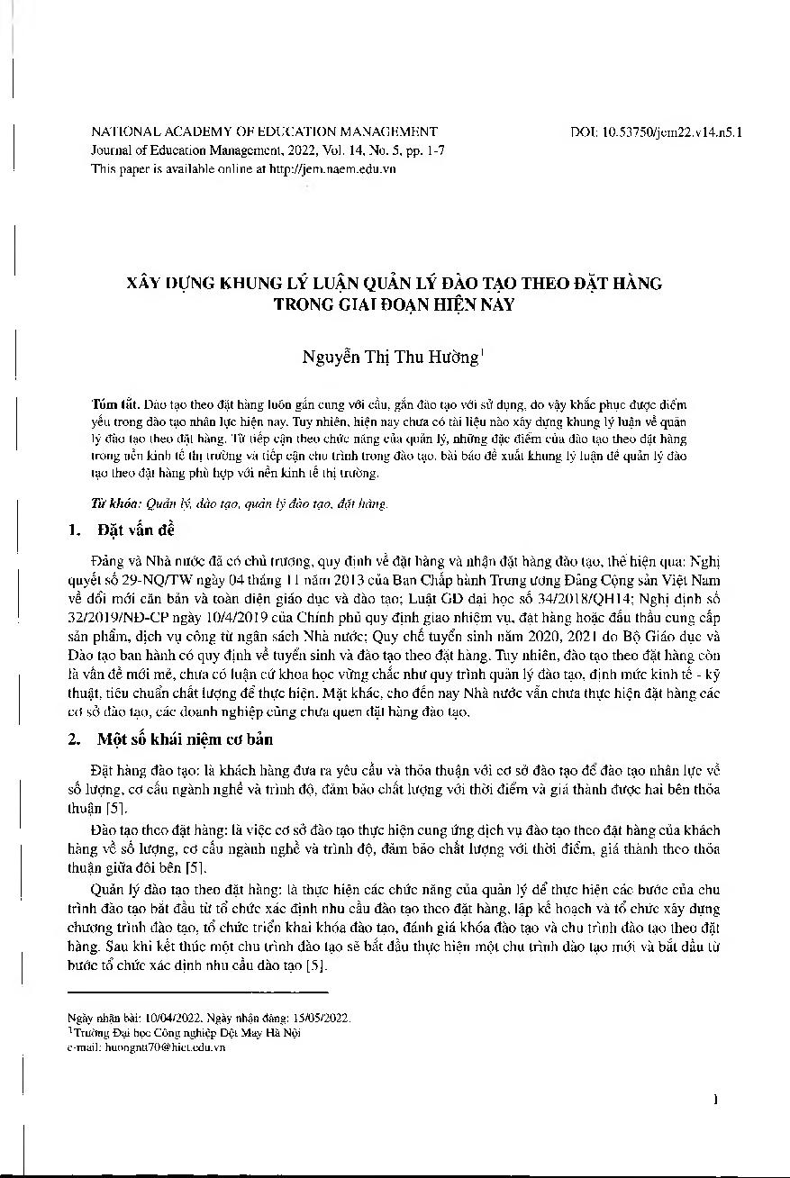 Xây dựng khung lý luận quản lý đào tạo theo đặt hàng trong giai đoạn hiện nay = Building theoretical framework of training management according to current orders