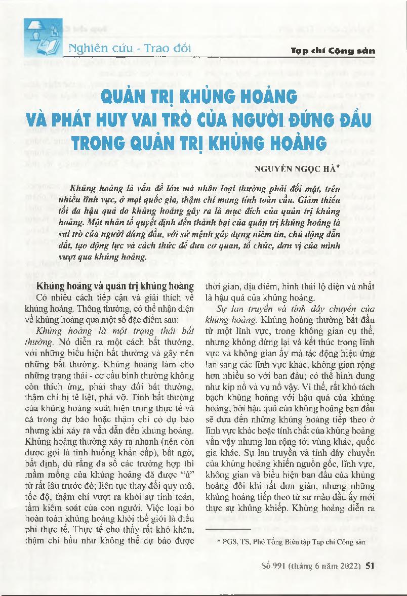 Quản trị khủng hoảng và phát huy vai trò của người đứng đầu trong quản trị khủng hoảng = Crisis management and promoting the role of leaders in crisis management