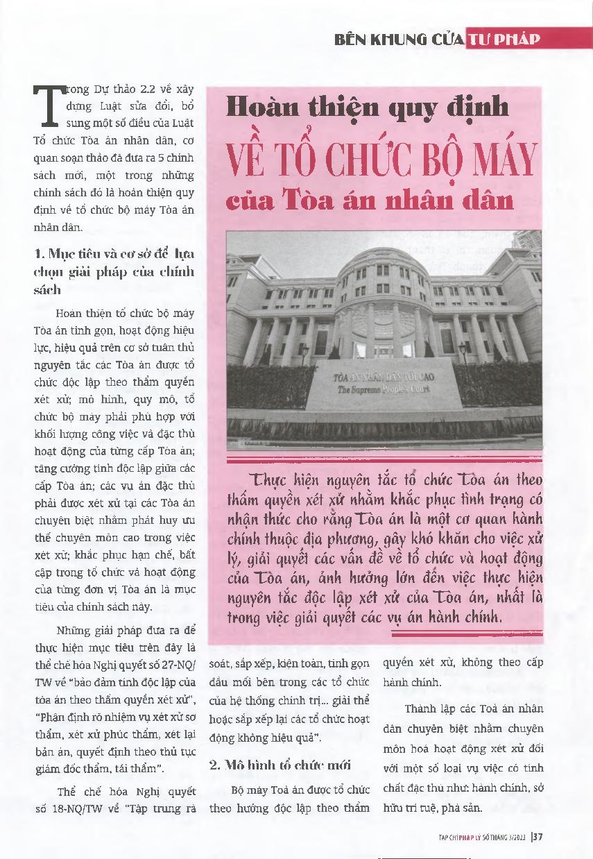Hoàn thiện quy định về tổ chức bộ máy của Tòa án nhân dân