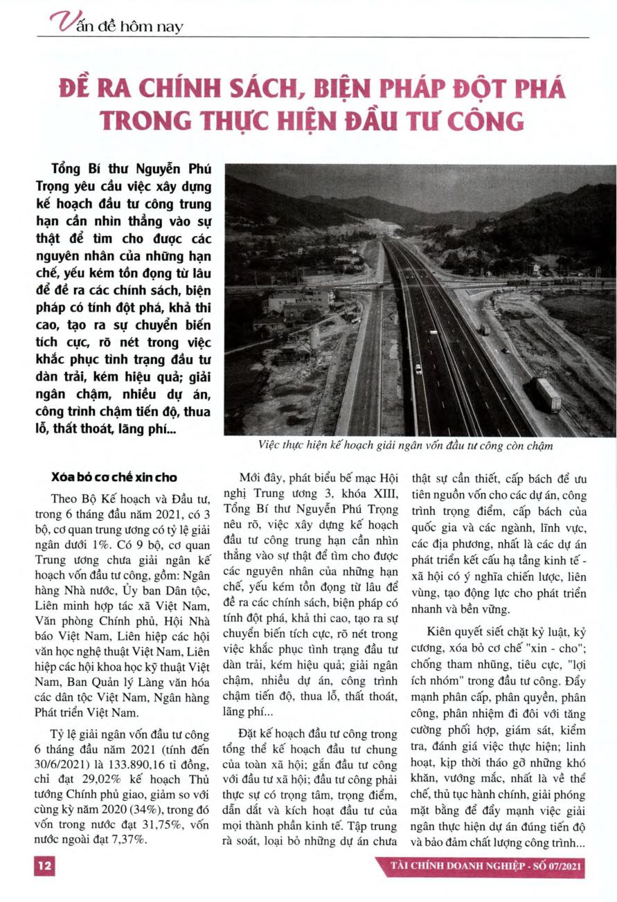 Đề ra chính sách, biện pháp đột phá trong thực hiện đầu tư công