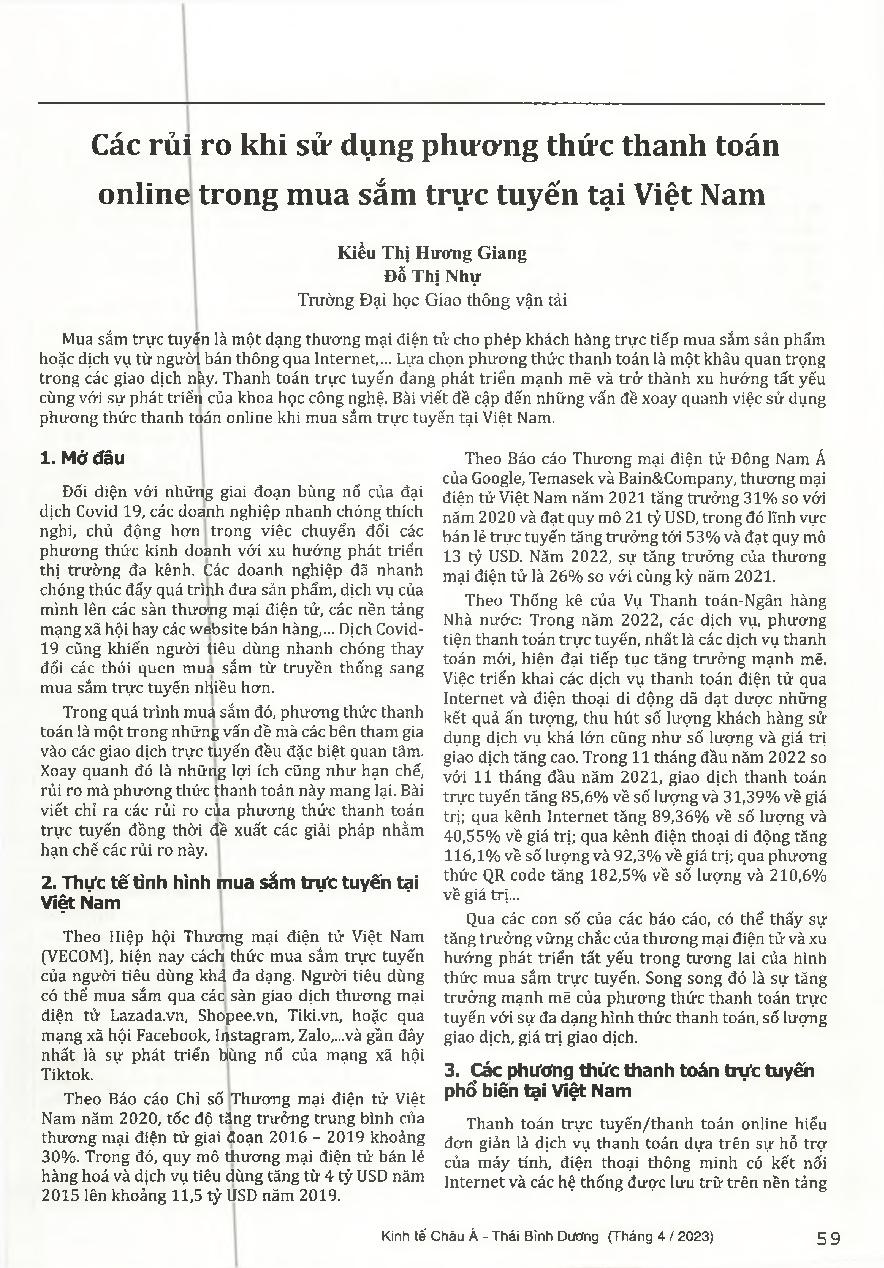 Các rủi ro khi sử dụng phương thức thanh toán online trong mua sắm trực tuyến tại Việt Nam