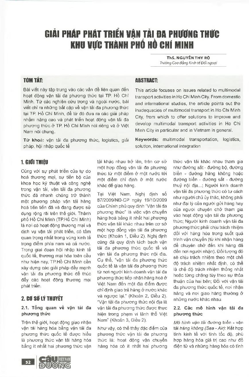 Giải pháp phát triển vận tải đa phương thức khu vực thành phố Hồ Chí Minh