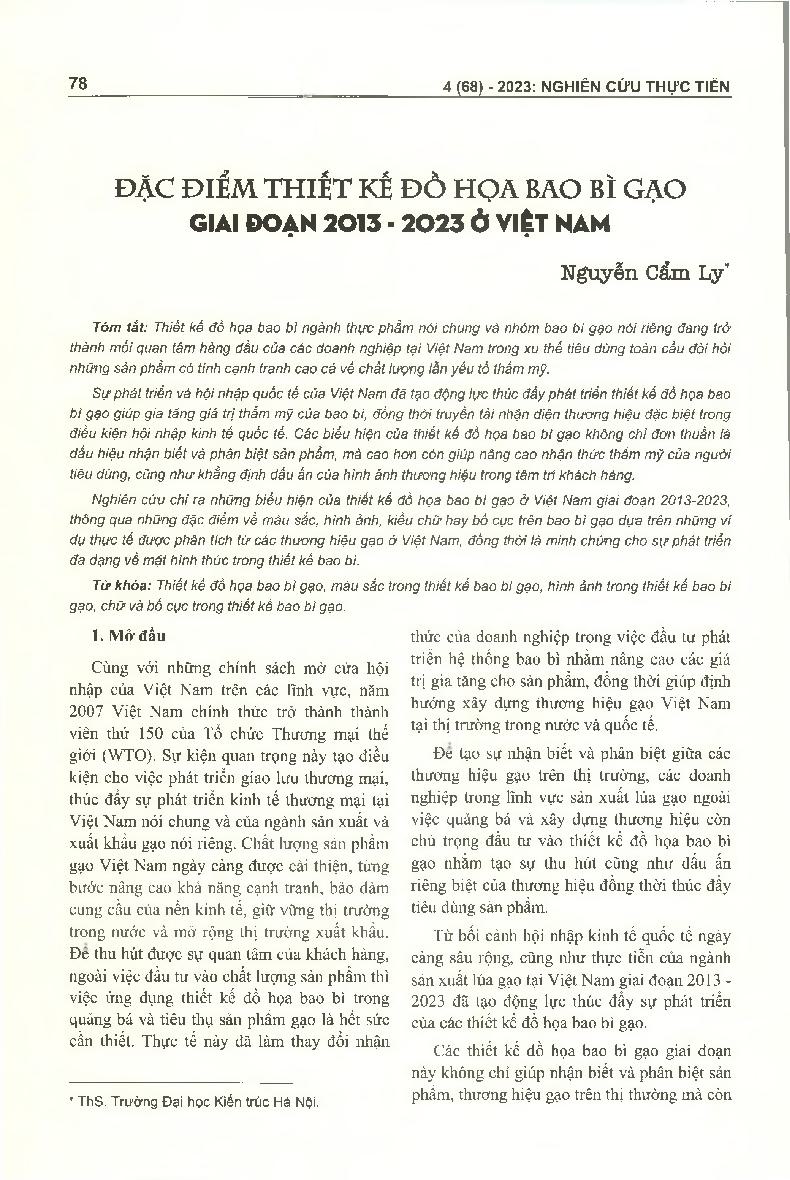 Đặc điểm thiết kế đồ họa bao bì gạo giai đoạn 2013 - 2023 ở Việt Nam = Features of graphic design of rice packaging in the period of 2013-2023 in Vietnam