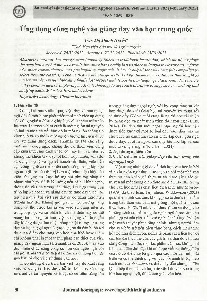 Ứng dụng công nghệ vào giảng dạy văn học Trung Quốc = Application of technology in teaching Chinese literature.