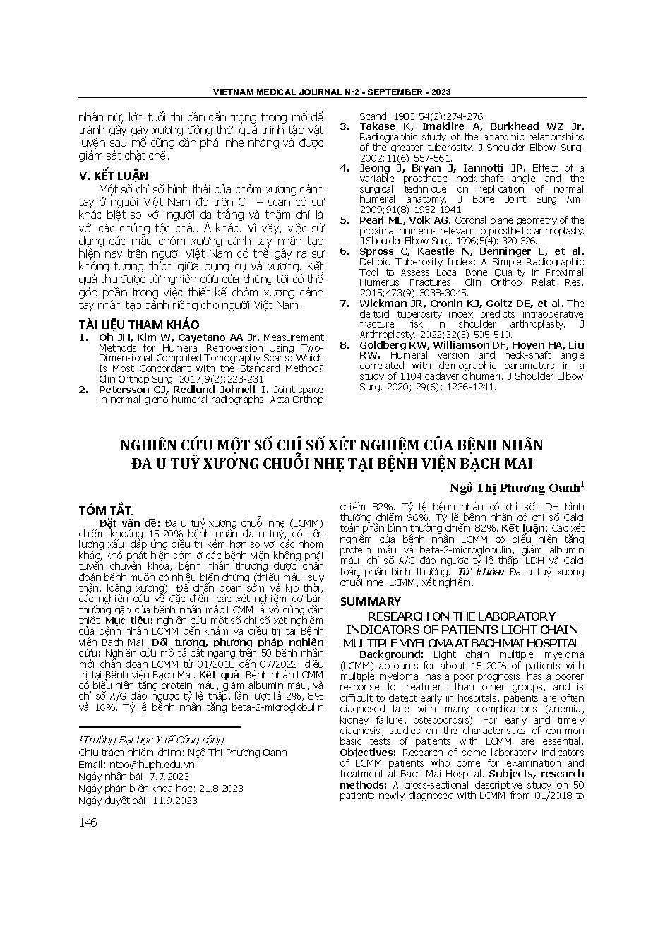 Nghiên cứu một số chỉ số xét nghiệm của bệnh nhân đa u tuỷ xương chuỗi nhẹ tại bệnh viện bạch mai = Research on the laboratory indicators of patients light chain multiple myeloma at bach mai hospital