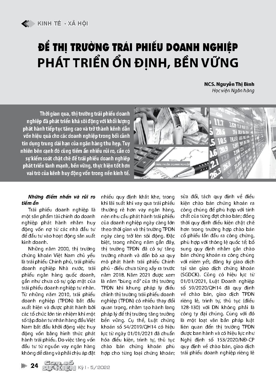 Để thị trường trái phiếu doanh nghiệp phát triển ổn định, bền vững