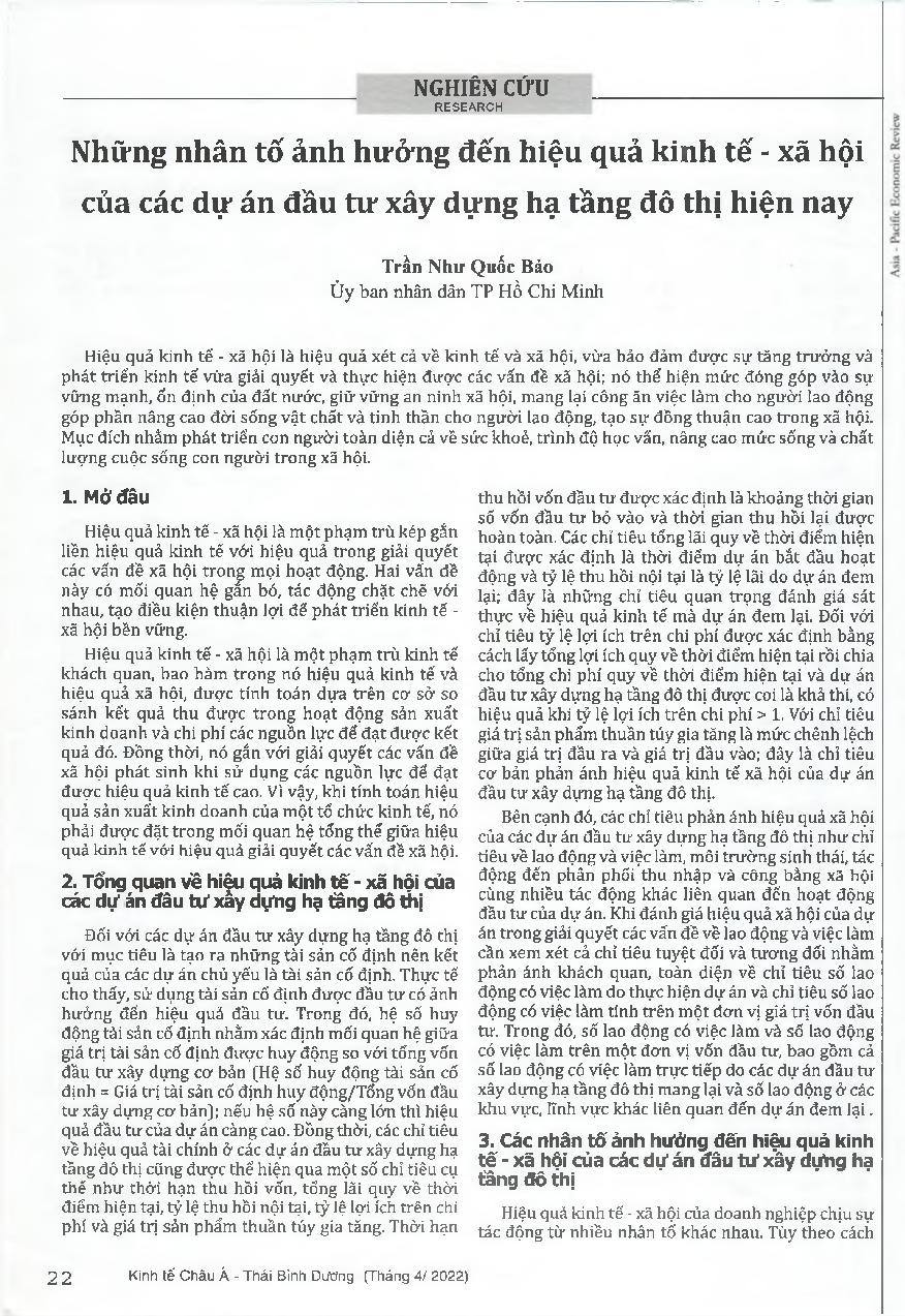 Những nhân tố ảnh hưởng đến hiệu quả kinh tế - xã hội của các dự án đầu tư xây dựng hạ tầng đô thị hiện nay