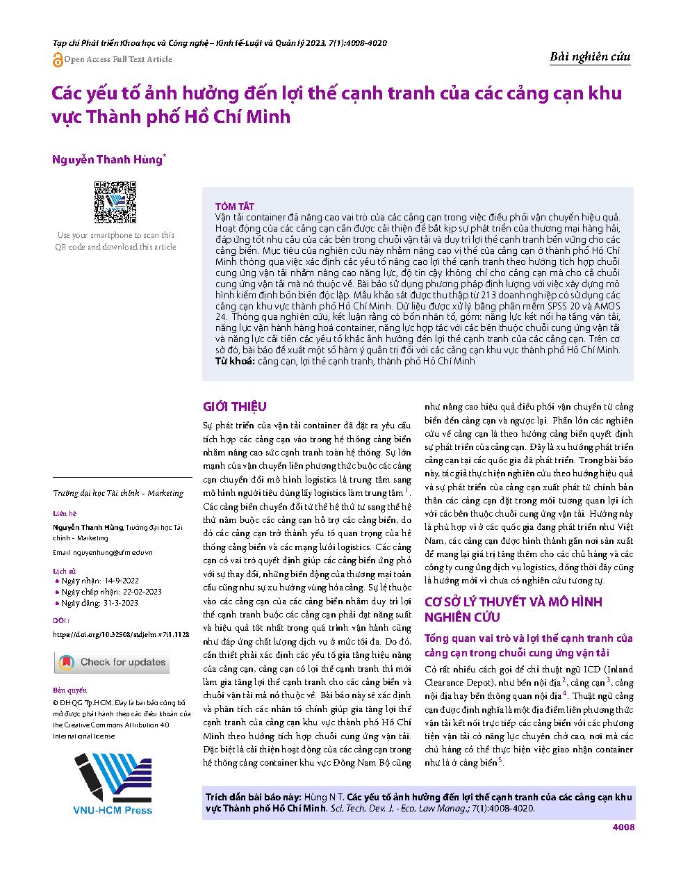 Các yếu tố ảnh hưởng đến lợi thế cạnh tranh của các cảng cạn khu vực Thành phố Hồ Chí Minh = Factors influencing Ho Chi Minh City based dry ports' competitive advantage