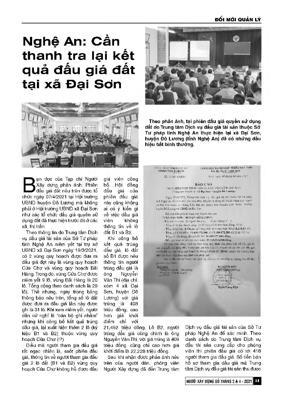 Nghệ An: cần thanh tra lại kết quả đấu giá đất tại xã Đại sơn